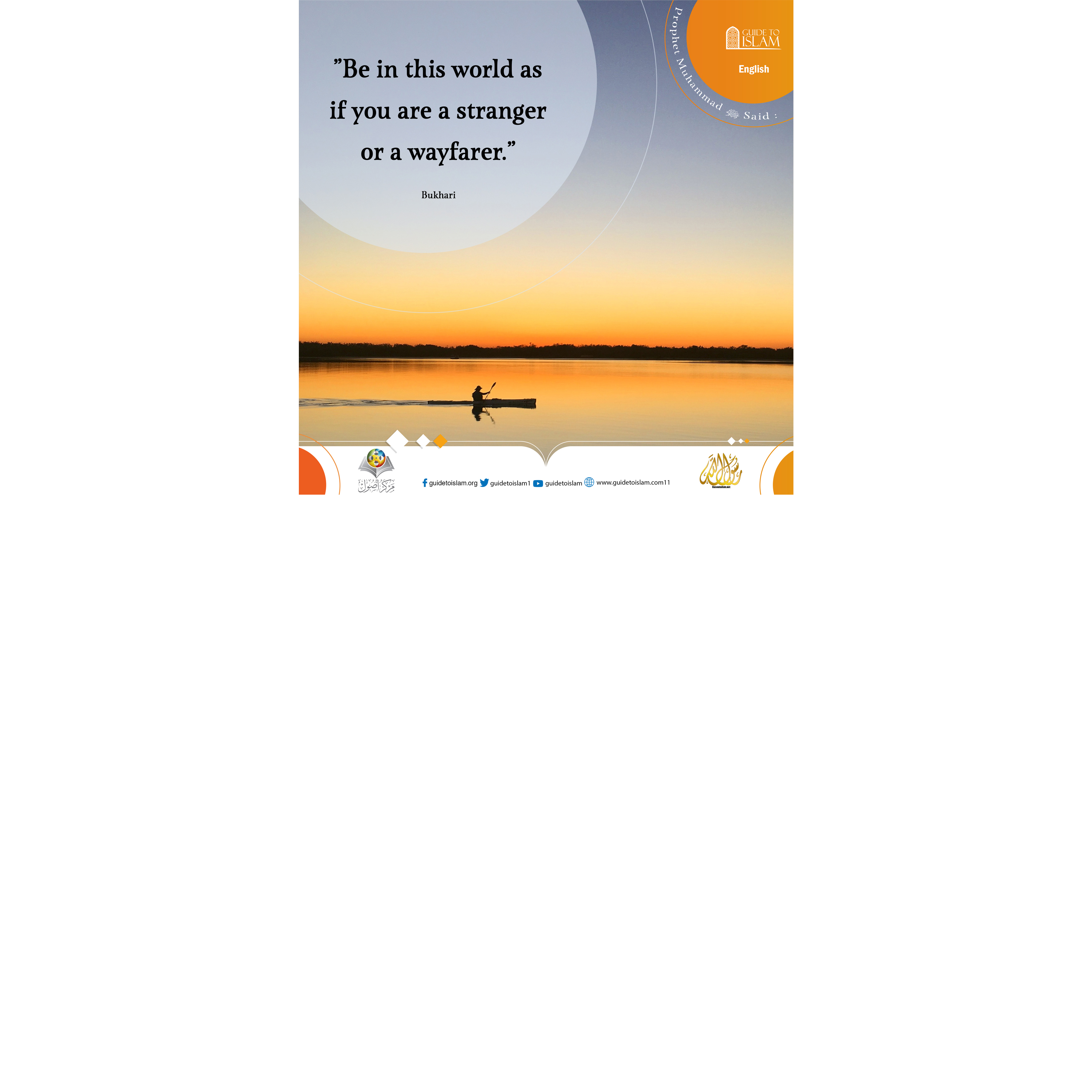 "Be in this world as if you are a stranger or a wayfarer." Ibn ‘Umar (may Allah be pleased with him) used to say: "In the evening, do not expect to live until the morning, and in the morning, do not expect to live until the evening. Take advantage of your health before times of sickness, and take advantage of your life before your death."