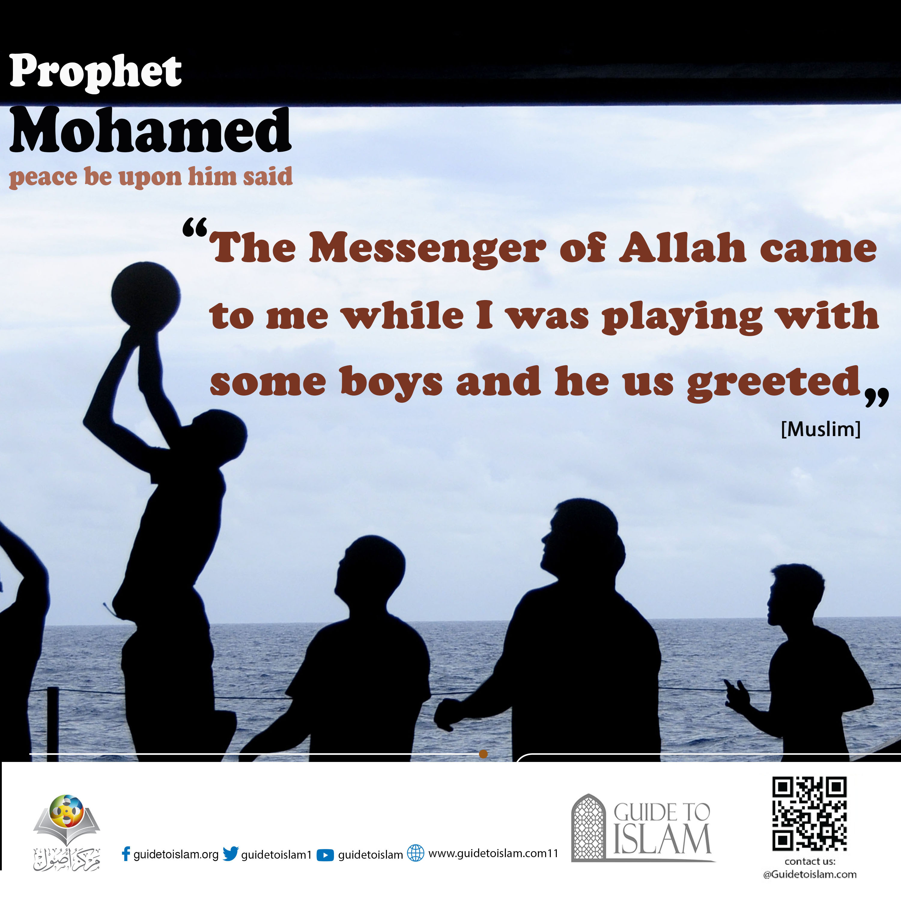 " The Messenger of Allah came to me while I was playing some boys and he us greeted"