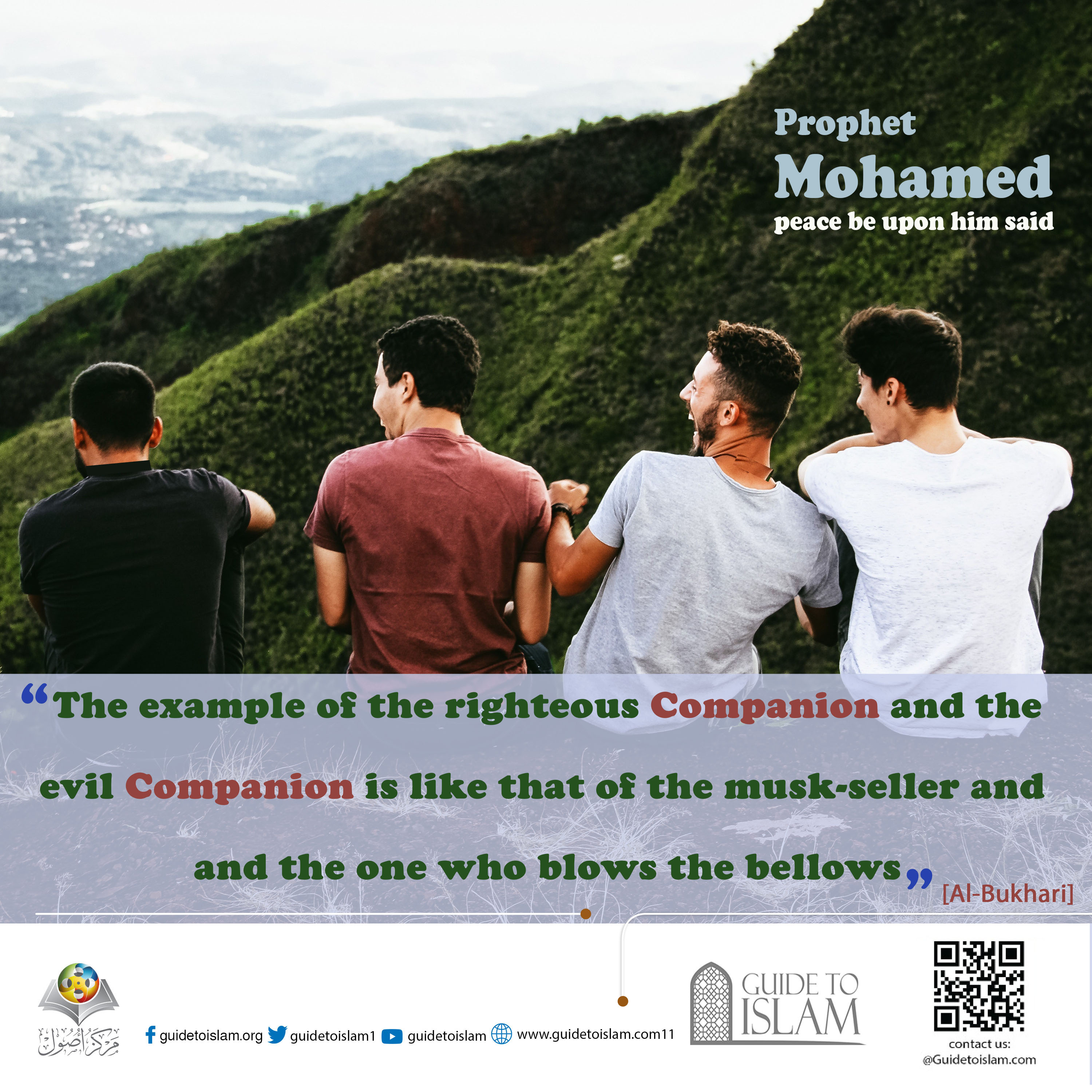 " The example of the righteous companion and the evil companion is like that of the musk-seller and the one who blows the bellows"