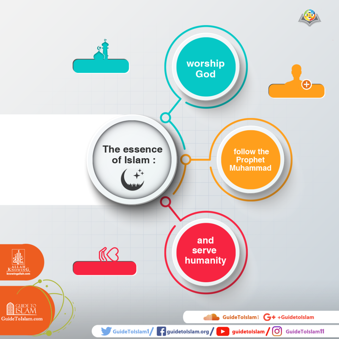 The essence of Islam: worship God, follow the Prophet Muhammad, and serve humanity
