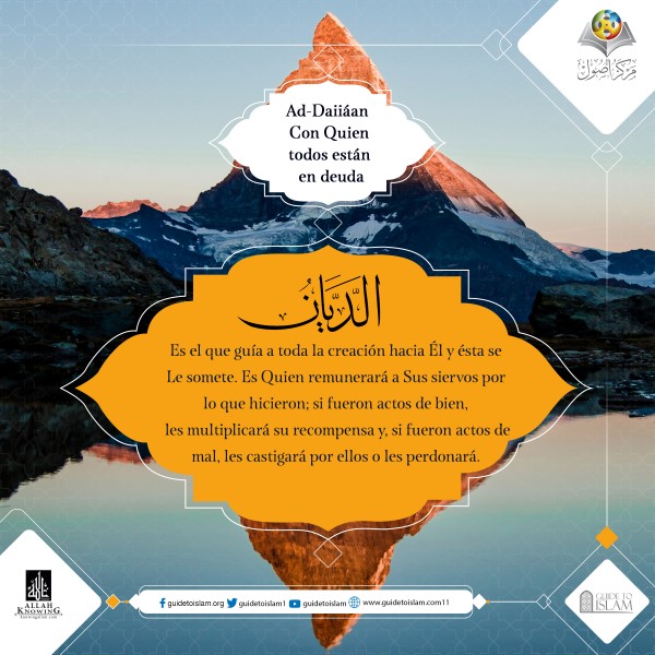 Es el que gua a toda la creación hacia Él y todos se le someten. Es Quien recompensará a Sus siervos por lo que hicieron, si fueron actos de bien, les multiplicará la recompensa, y si fueron actos malos, les castigará por ellos o les perdonará.